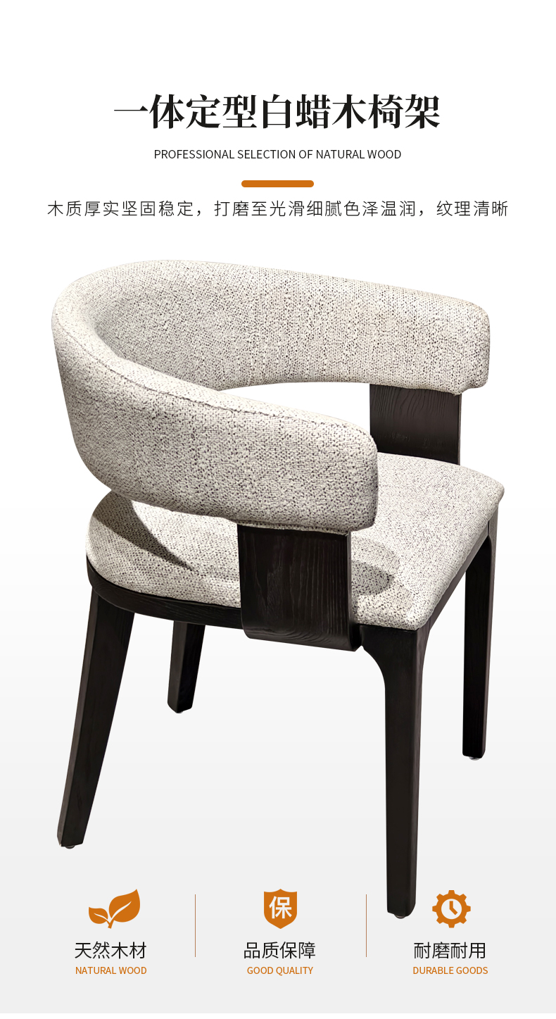 椅架:一体定型白蜡木,符合人体结构设计,表面使用高端亚麻布,肌理感丰富