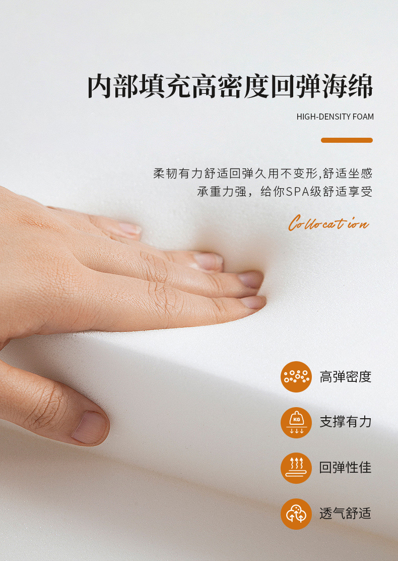 坐垫:高端亚麻布内部填充高密度海绵,舒适回弹
