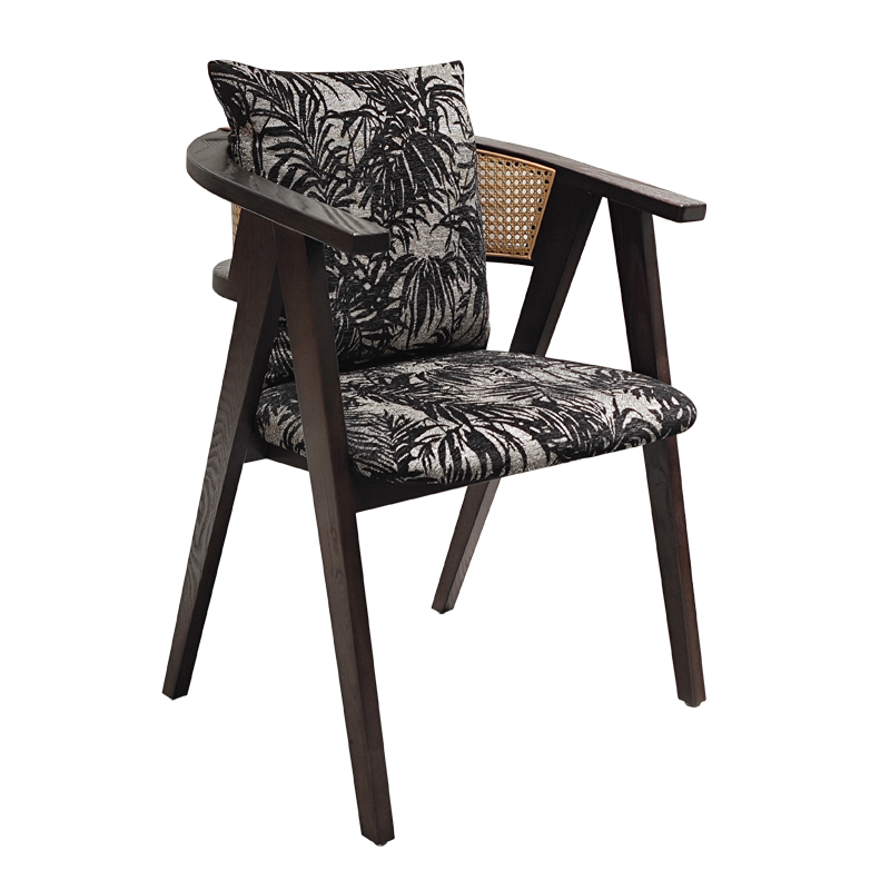 椅架:烟熏色白蜡木椅架搭配竹编工艺