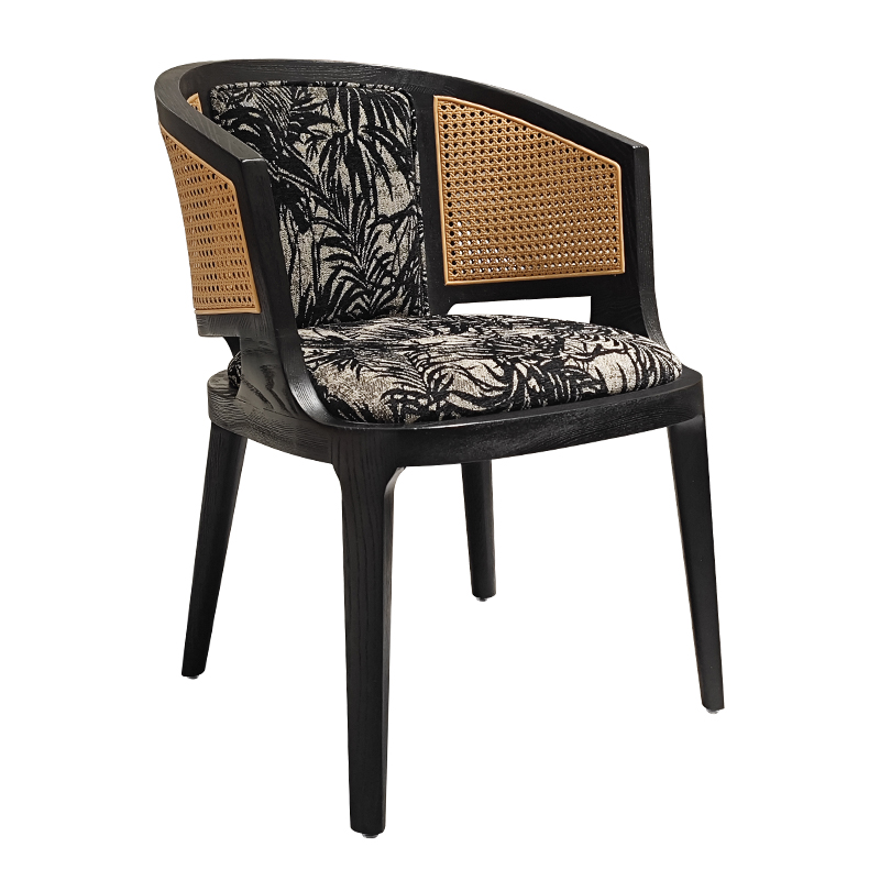椅架:烟熏色白蜡木椅架搭配竹编工艺