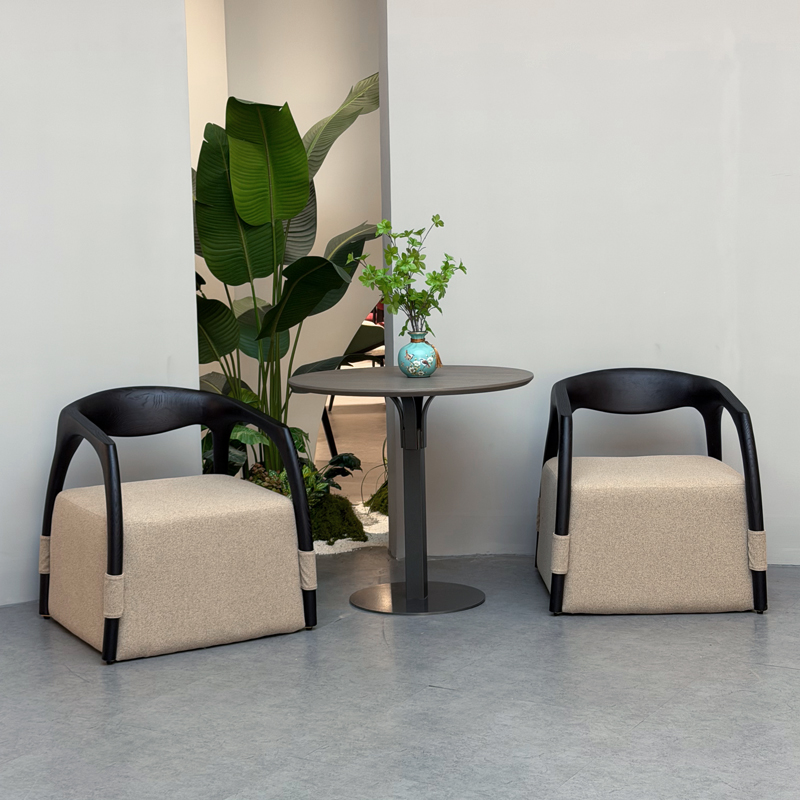 沙发:整体使用白蜡木实木椅架,搭配优质布艺,人体工程学