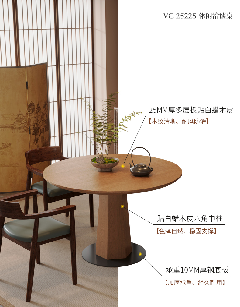 脚架:10mm厚钢底板,贴白蜡木皮中柱