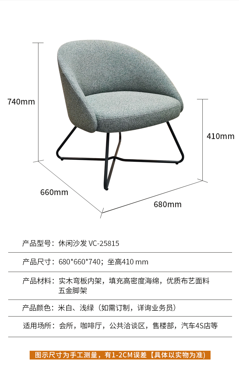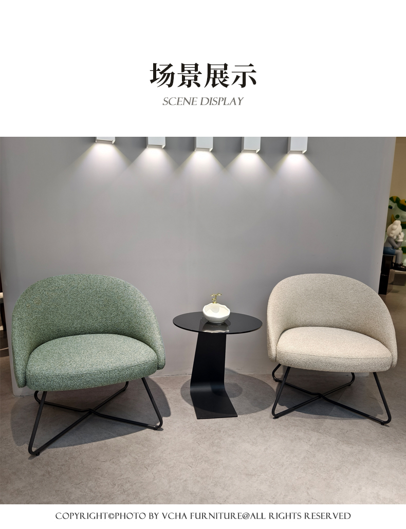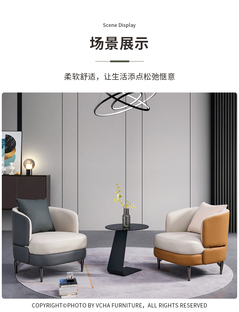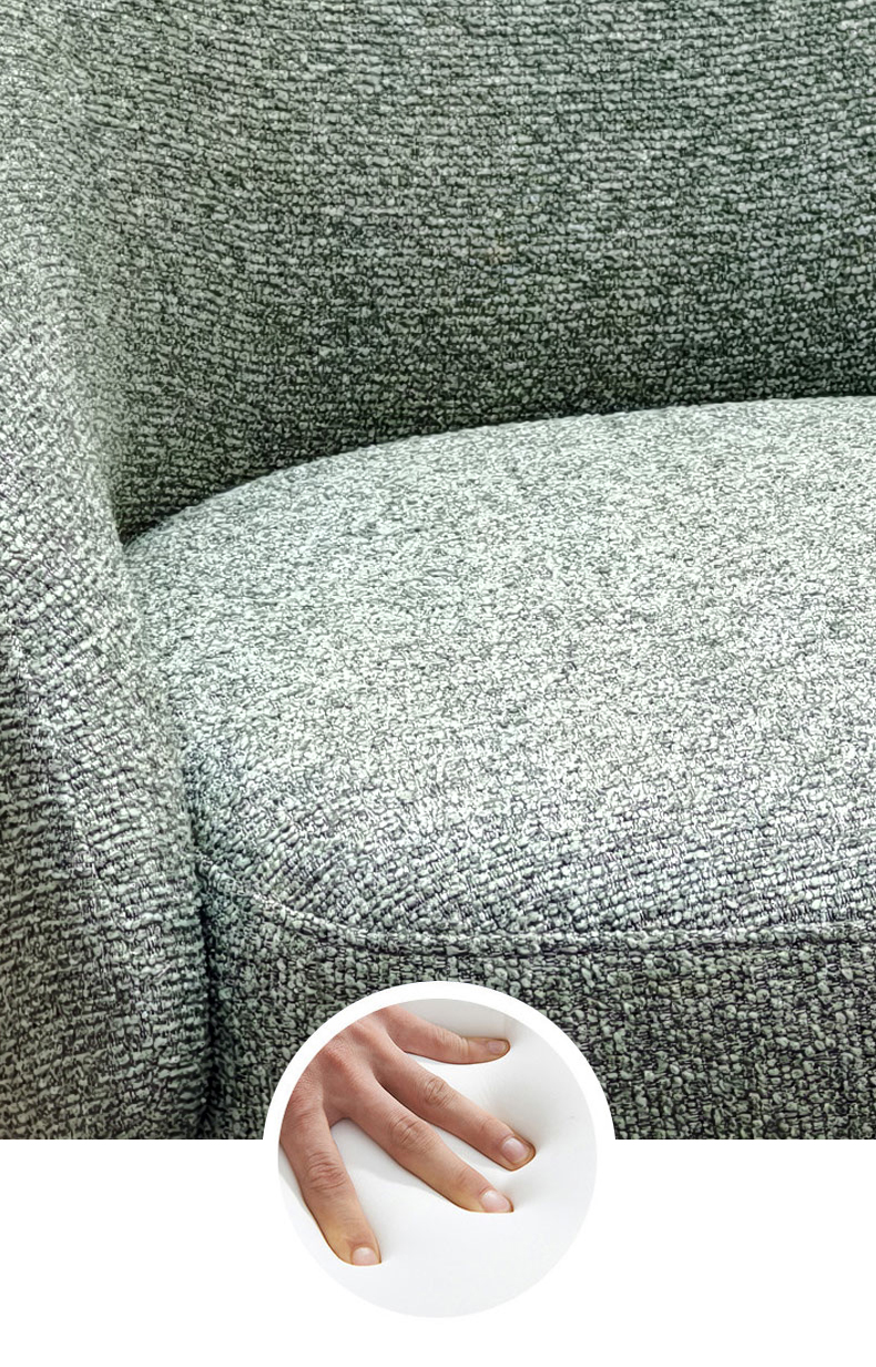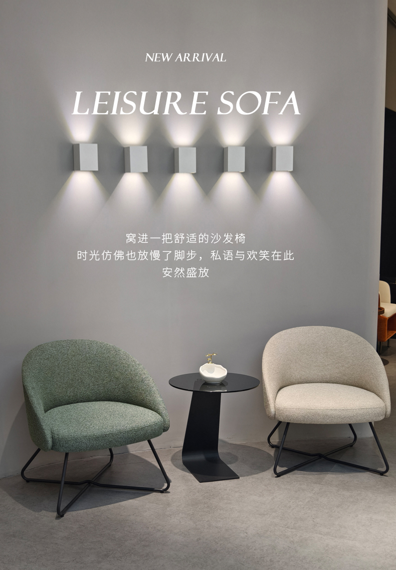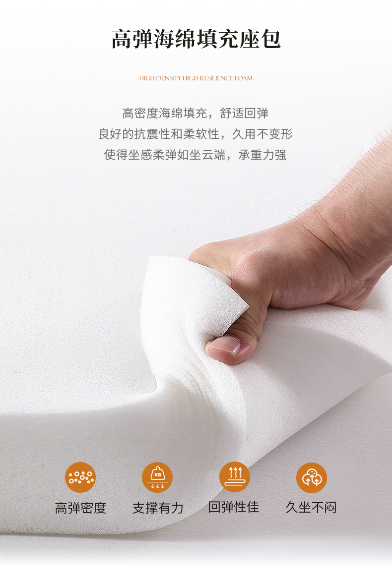 沙发:实木弯板内架,贴合人体,填充高密度海绵,舒适回弹,表面使用优质布艺面料,触感亲肤 脚架:五金脚架,稳固简约大气