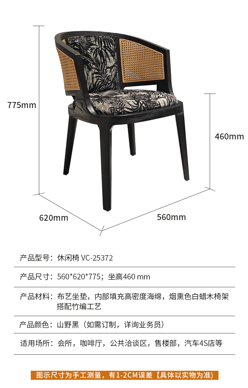 椅架:烟熏色白蜡木椅架搭配竹编工艺